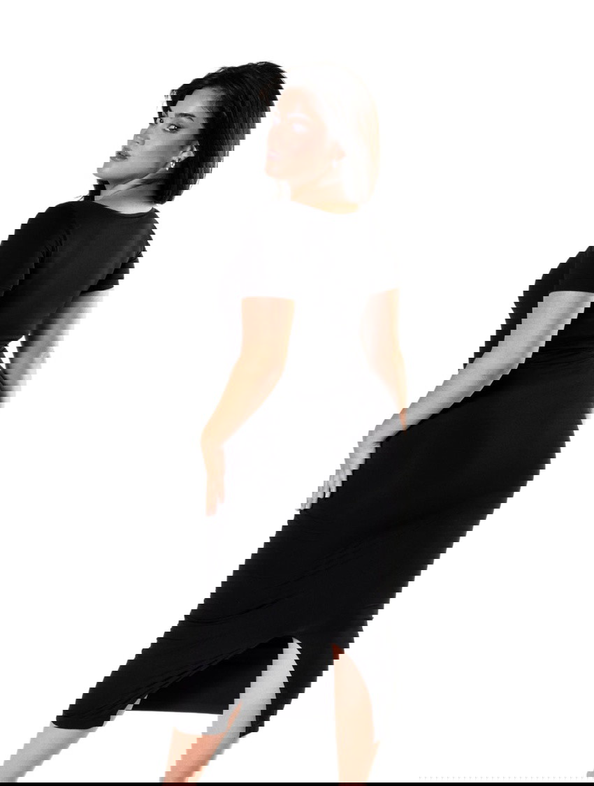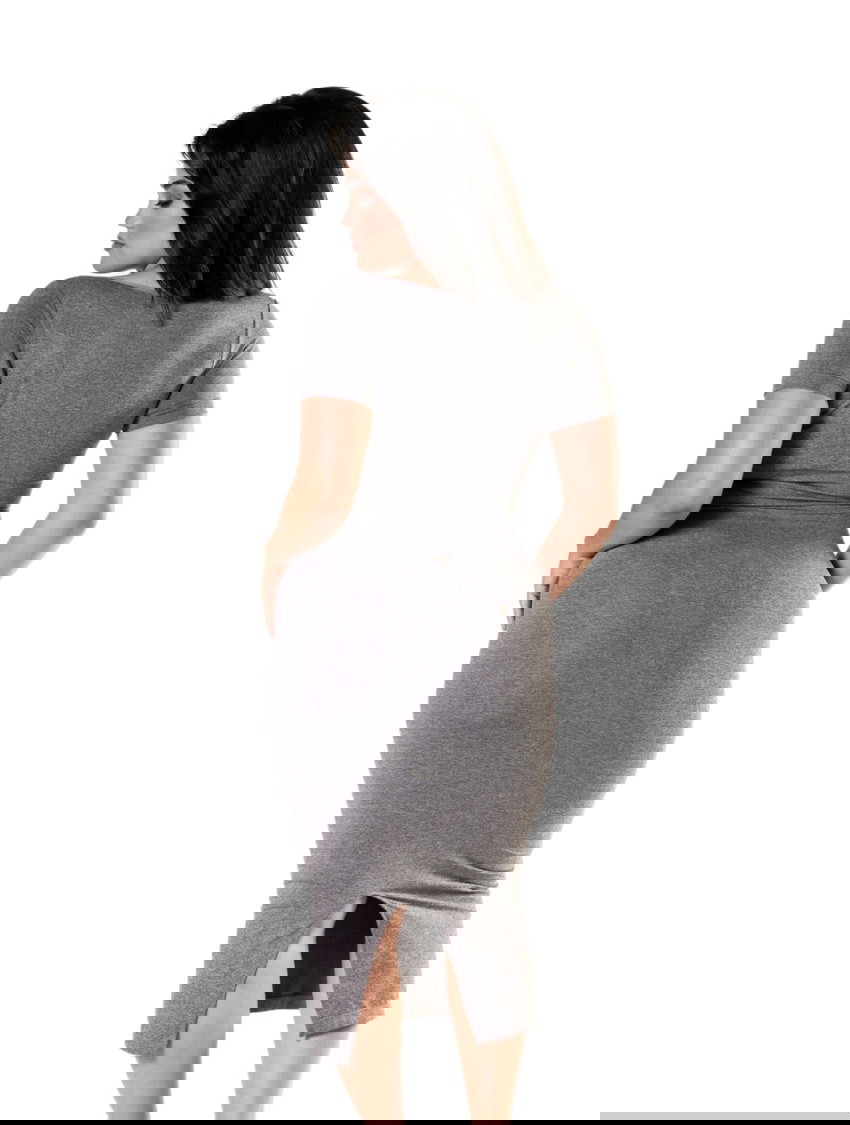 The Back Slit Shapewear Dress combines style and everyday comfort, making it perfect for casual wear or day-to-day occasions. Featuring a short sleeve cut, round neckline, and knee-to-midi length design with a center slit, it offers ease of movement while highlighting your best features.