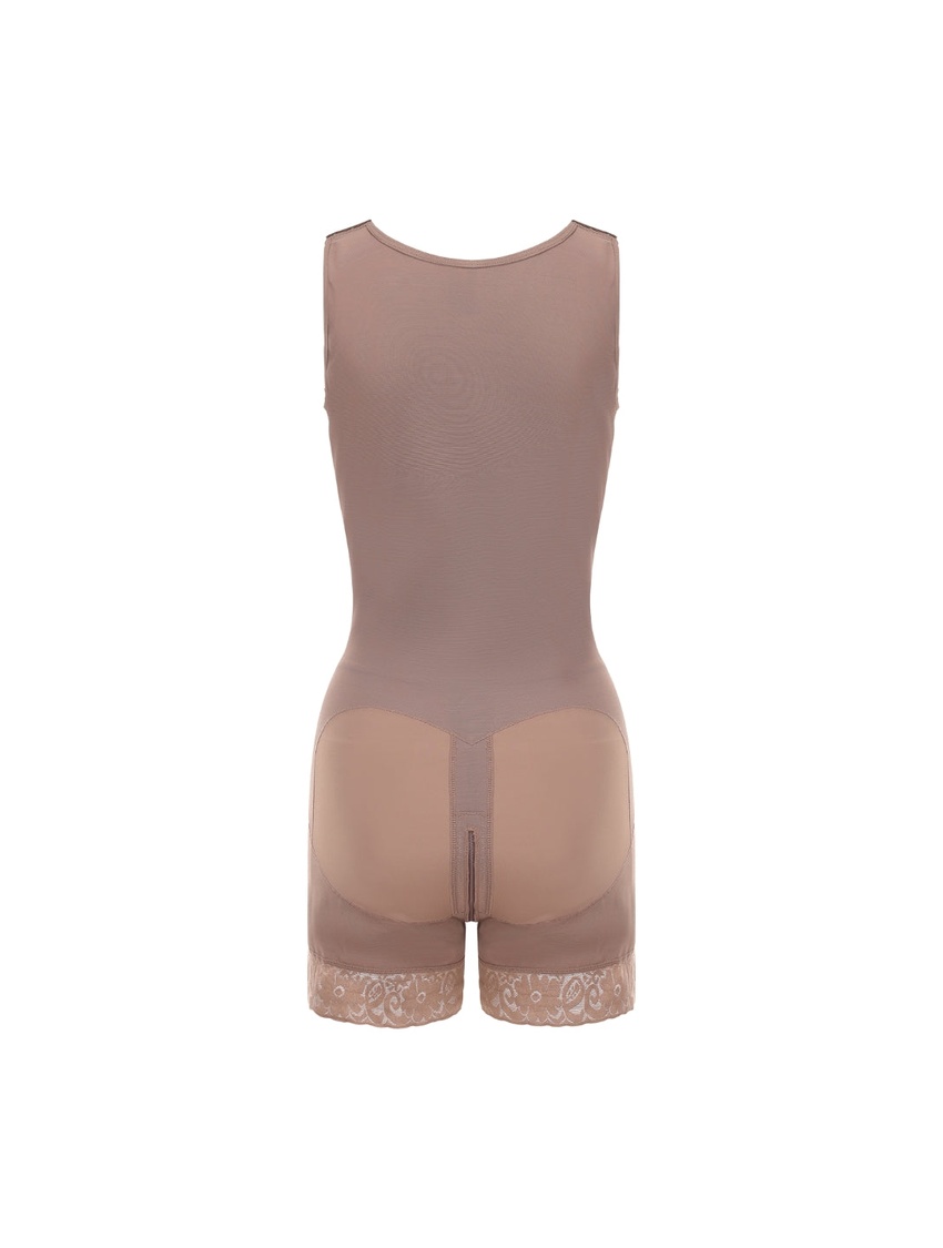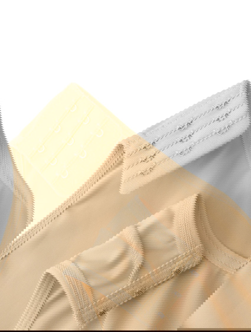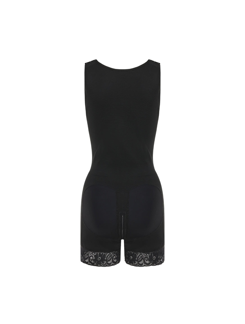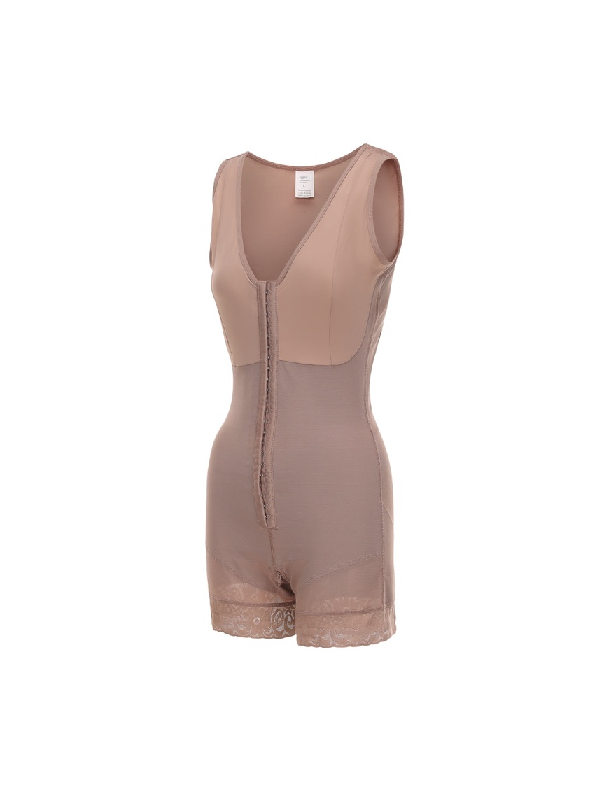 - Targeted compression shaping that flattens the midsection, smooths hips and thighs, and subtly lifts the bust