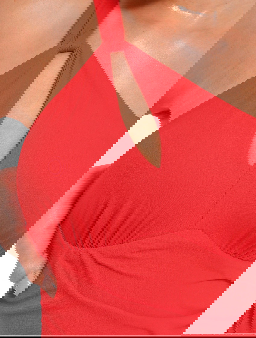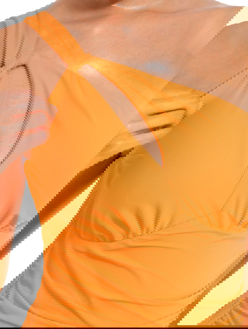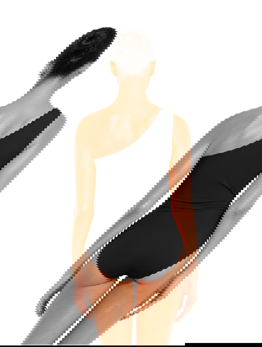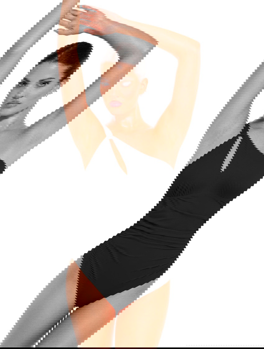 The double-layer build pairs a high-stretch outer swim fabric with a sculpting inner mesh to enhance your curves. The asymmetrical one-shoulder design and bold cut-out detail add sophistication with a modern edge.