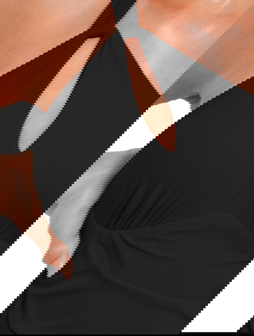 The bust is double-layered for full coverage, while a hidden elastic band under the chest offers wire-free lift and support. A waist-pleat design visually slims the midsection, and high-back coverage smooths out any back bulges for a polished finish.