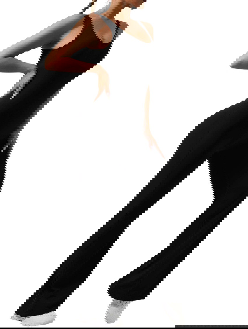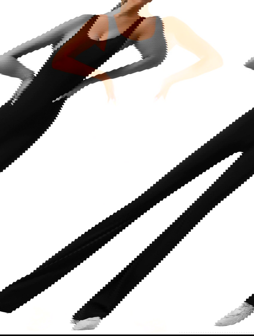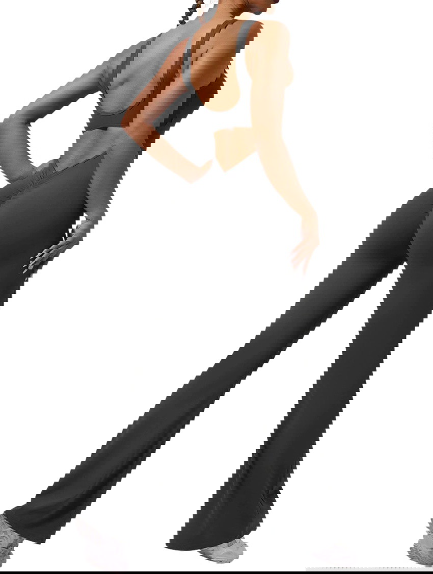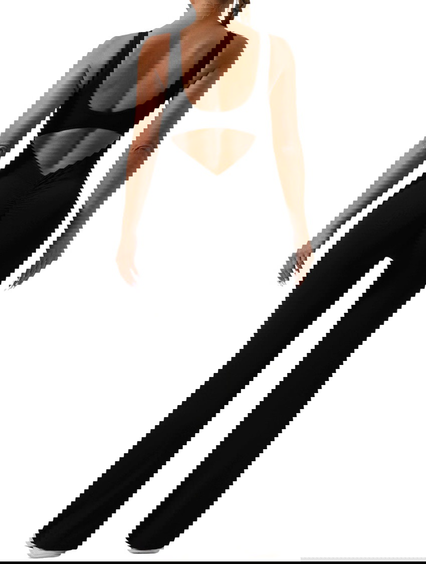 Elevate your athleisure game with our Flared Sports Jumpsuit, designed to sculpt, smooth, and move with your body effortlessly. This sleek one-piece features a flattering scoop neckline, supportive straps, and a statement open-back cutout that adds bold style while keeping you cool. Finished with flared legs for a lengthened, balanced silhouette, this jumpsuit blends performance and fashion in a way that feels as good as it looks.