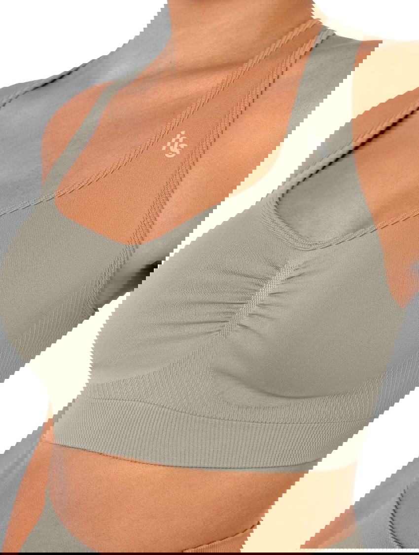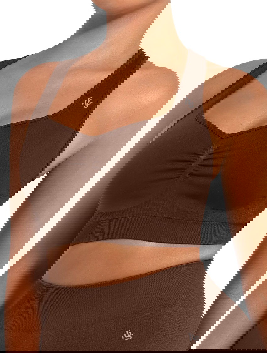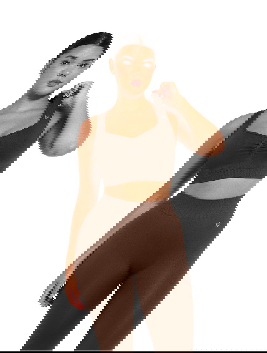 Designed for lift, support, and sculpting comfort, the Honey Lift Bra features a flattering square neckline and ruched front detail to enhance your natural shape. This wireless sports bra with full coverage cups provides complete support without the need for underwires.