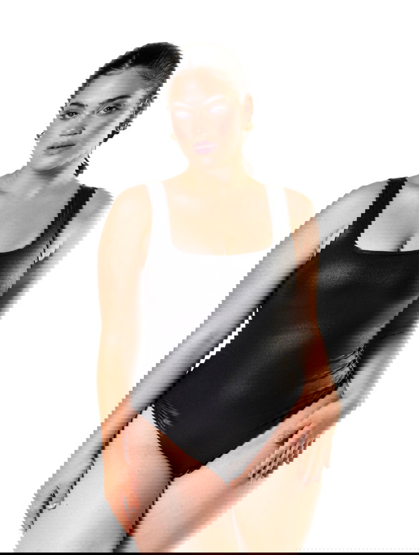 Become the center of attention with our Leather Snatched Bodysuit. Featuring gold print faux leather, four-way stretch, and an open crotch design for convenience. The double-layer fabric on the breast panel and compressive elastic mesh will shape your waist and abdomen. Perfect for parties, daily wear, and the office. Get ready to make a statement with this stylish and skin-friendly bodysuit.