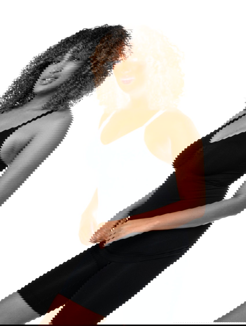 Interior Hourglass Power Mesh Lining with panels strategically placed at the waist and tummy for 360° shaping and sculpting, Adjustable straps, Breathable and comfortable fabric, Bonded flat edges for a no-dig feel.