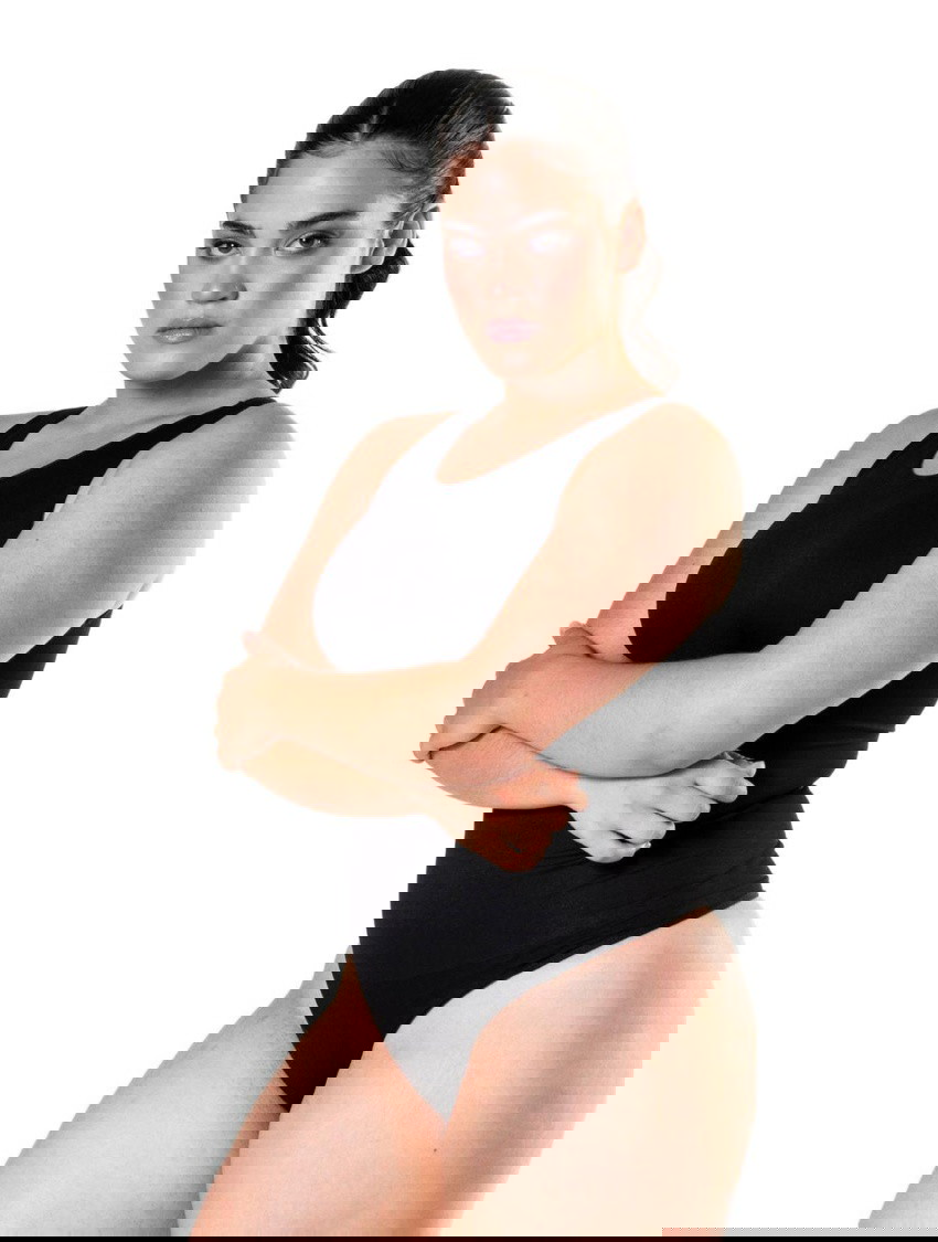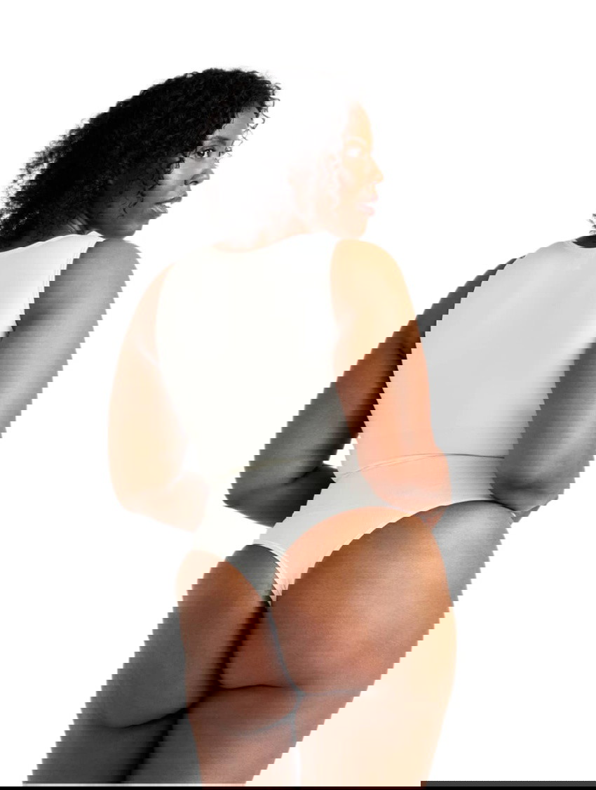 A thong bodysuit that effectively controls the abdomen and supports the chest, while also enhancing the curves of the buttocks. The versatile round neck style allows for easy pairing with jackets and jeans, making it a practical and stylish choice for all-day wear. With a snap button design on the crotch, this bodysuit offers convenience for bathroom breaks and ensures it stays in place. Comfortable, breathable, and environmentally friendly - this is the ultimate bodysuit for both fashion and function.