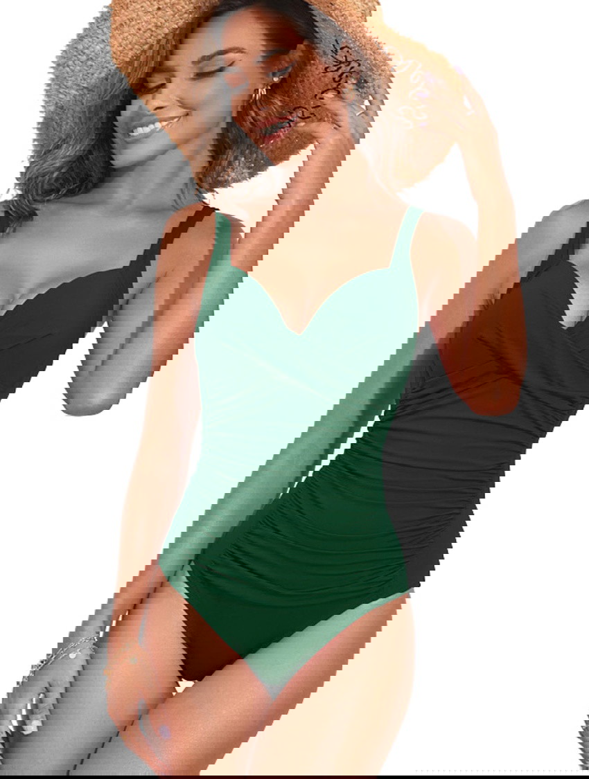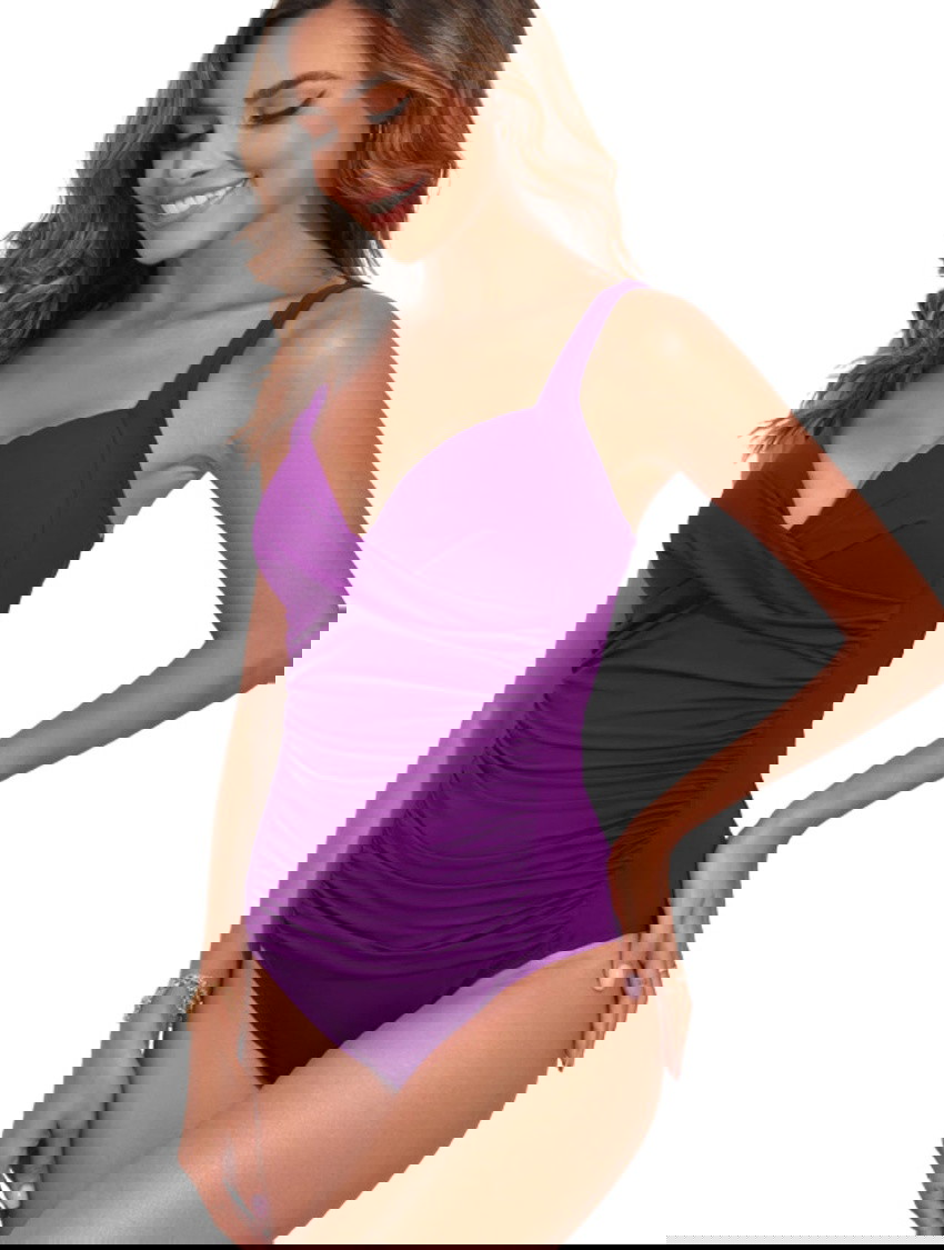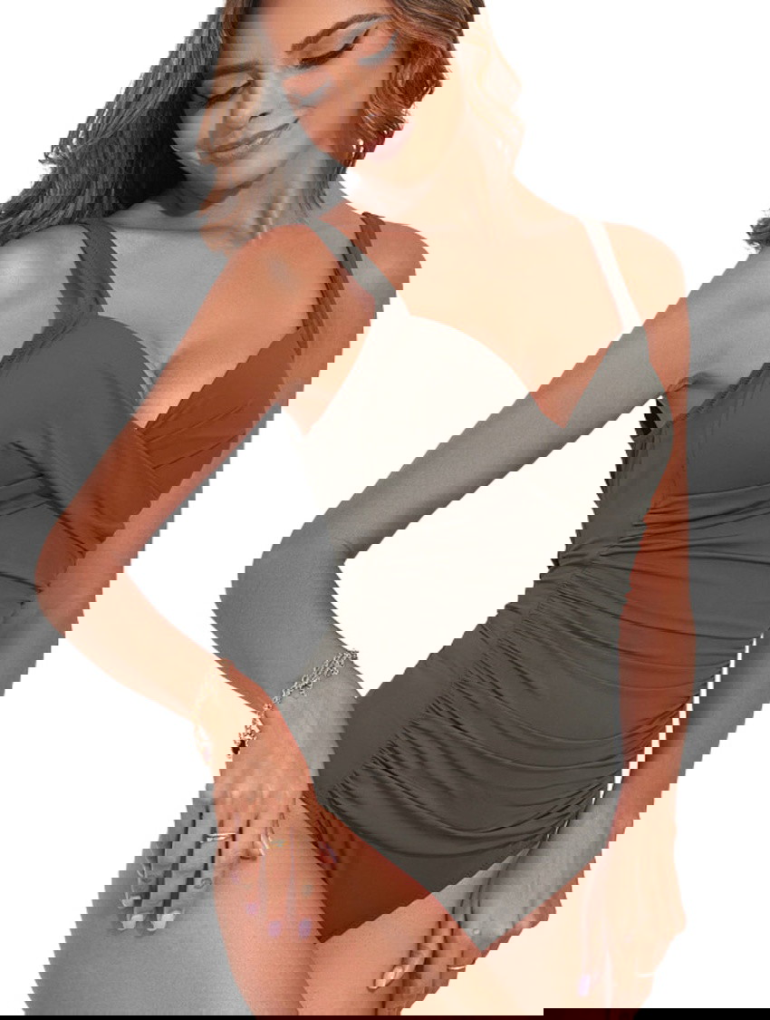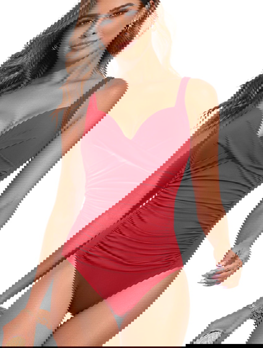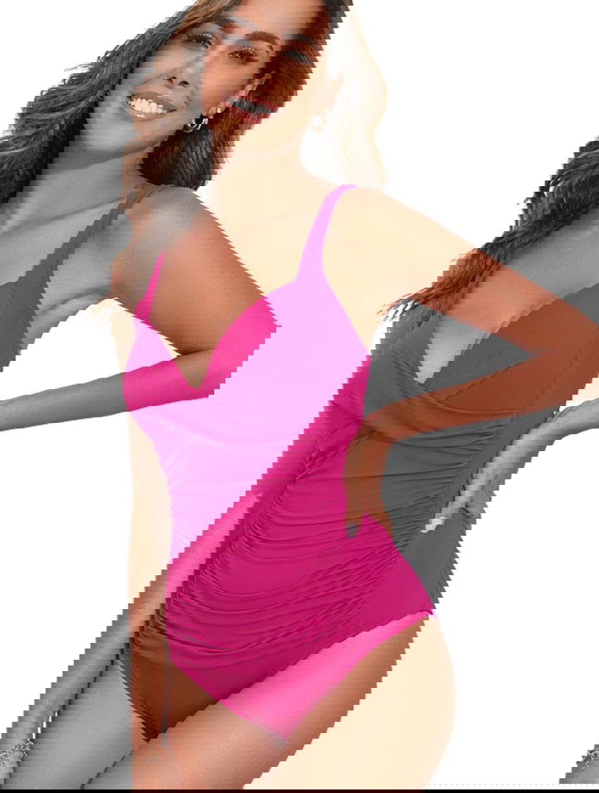 The wrap-style front and strategic ruching along the torso contour your curves and smooth your silhouette. Built-in tummy control and a double-layered bust deliver gentle support and coverage—no wires or padding needed.