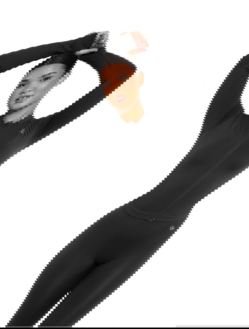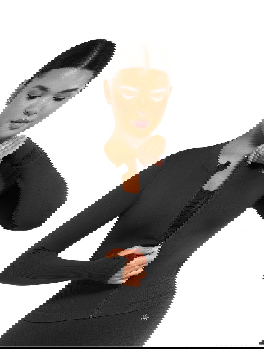 Designed to sculpt and enhance your natural curves, this women’s zip-up jacket delivers a sleek, body-hugging fit with seamless contouring details that smooth and define your waist, tummy, and back. The ribbed waist and sleeve accents offer medium compression for a snatched look, while the thumbhole long sleeves add both function and style.