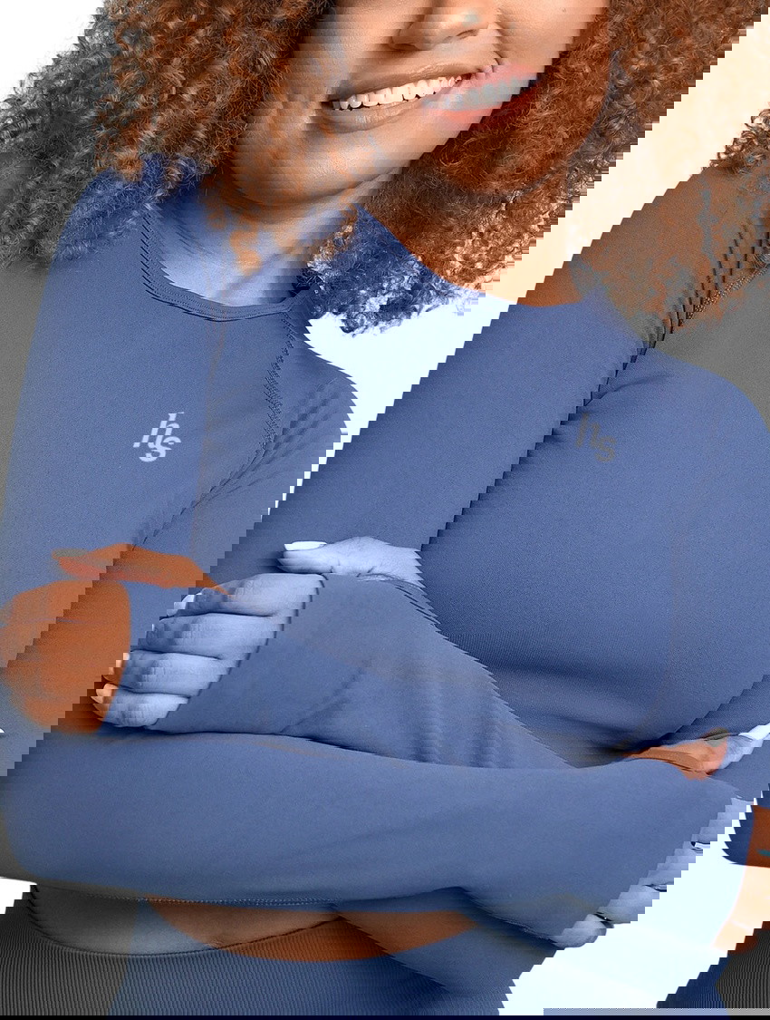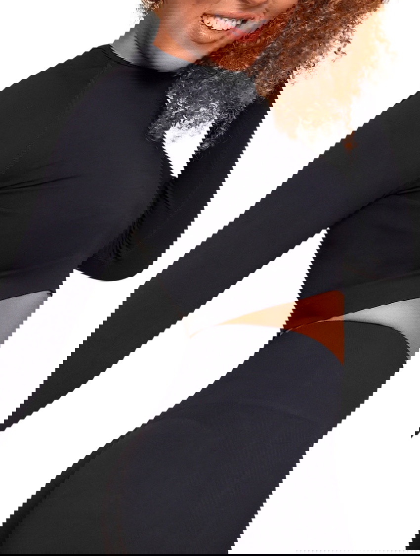 Designed for ultimate comfort and confidence, this women’s long-sleeve top smooths, sculpts, and moves with you. The ultra-soft, seamless knit in nylon, spandex, and elastane hugs your curves with low compression for a true second-skin feel. A sleek, body-contouring fit subtly refines the tummy, waist, and back, while thumbhole sleeves add an effortless, sporty finish.