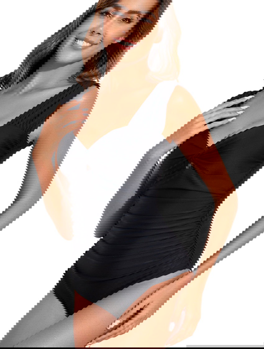 Strategic ruching through the waist smooths and contours your midsection, while the built-in tummy control shapes without restricting movement. Made from soft, stretch-enhanced fabric, it provides seamless shaping—no wires, no stiff panels, just pure comfort.