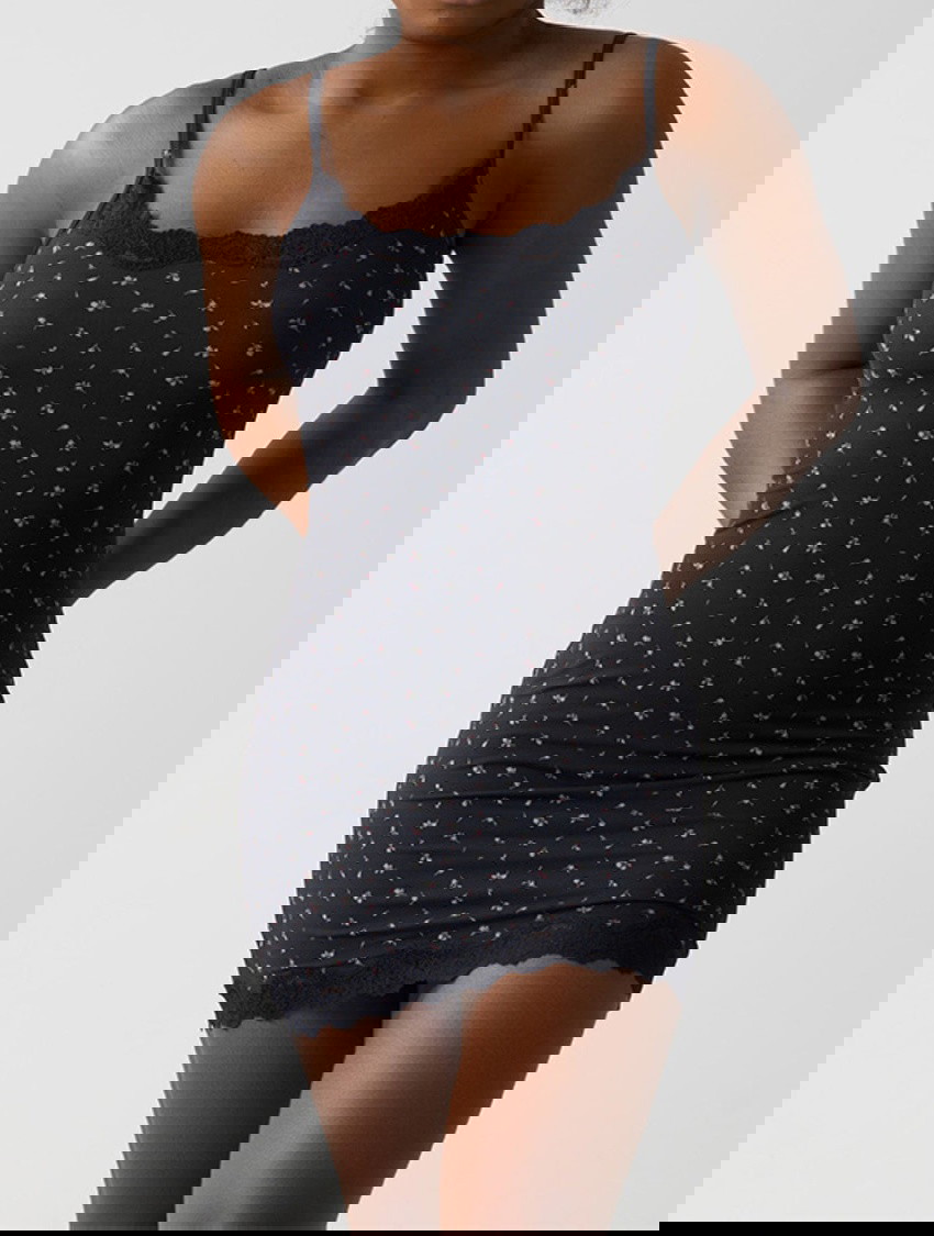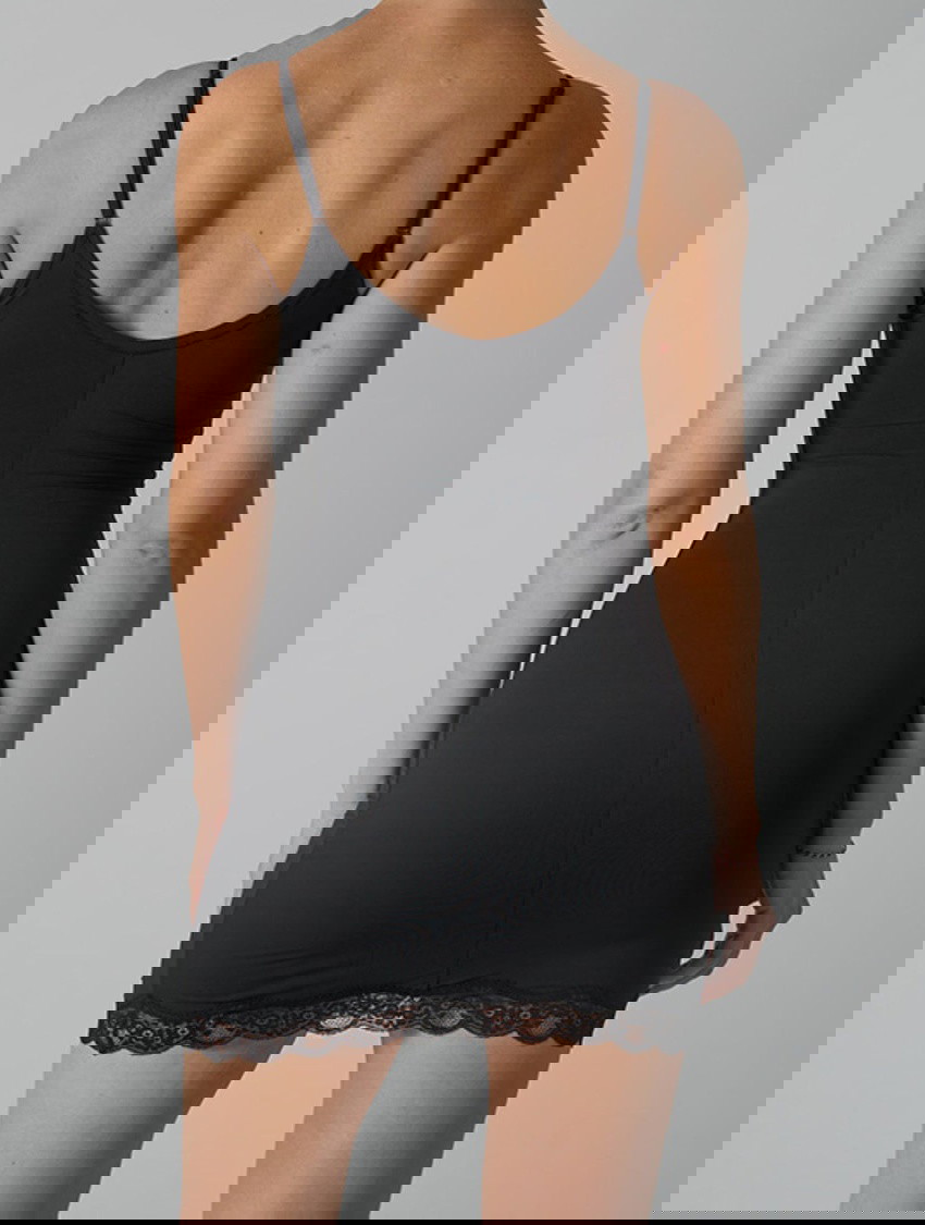 Meet the ultimate second-skin slip that blends elegance, comfort, and everyday versatility. The Smooth Lace Singlet Dress is crafted from our signature seamless fabric that hugs your curves without squeezing, creating a flawless, smoothing effect under your favorite outfits—or worn on its own for effortless lounge chic.