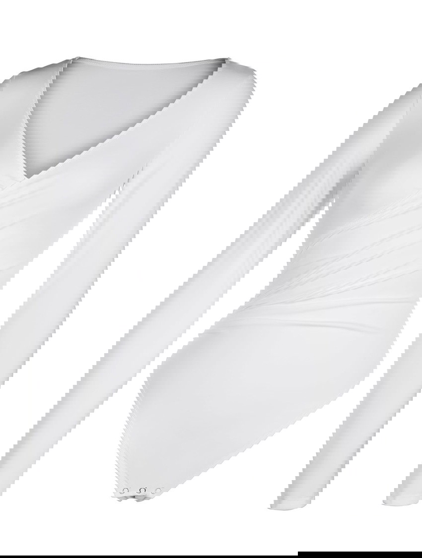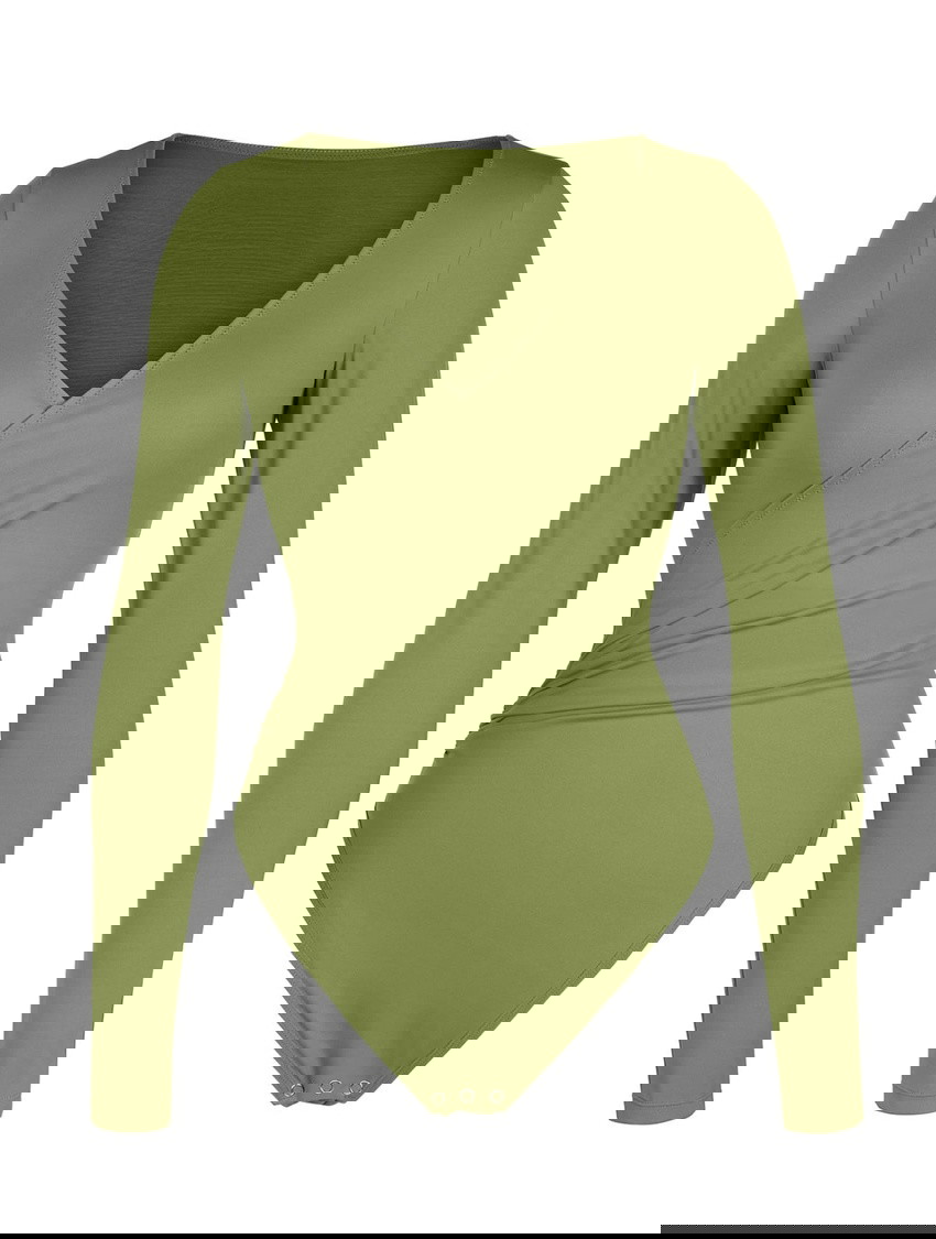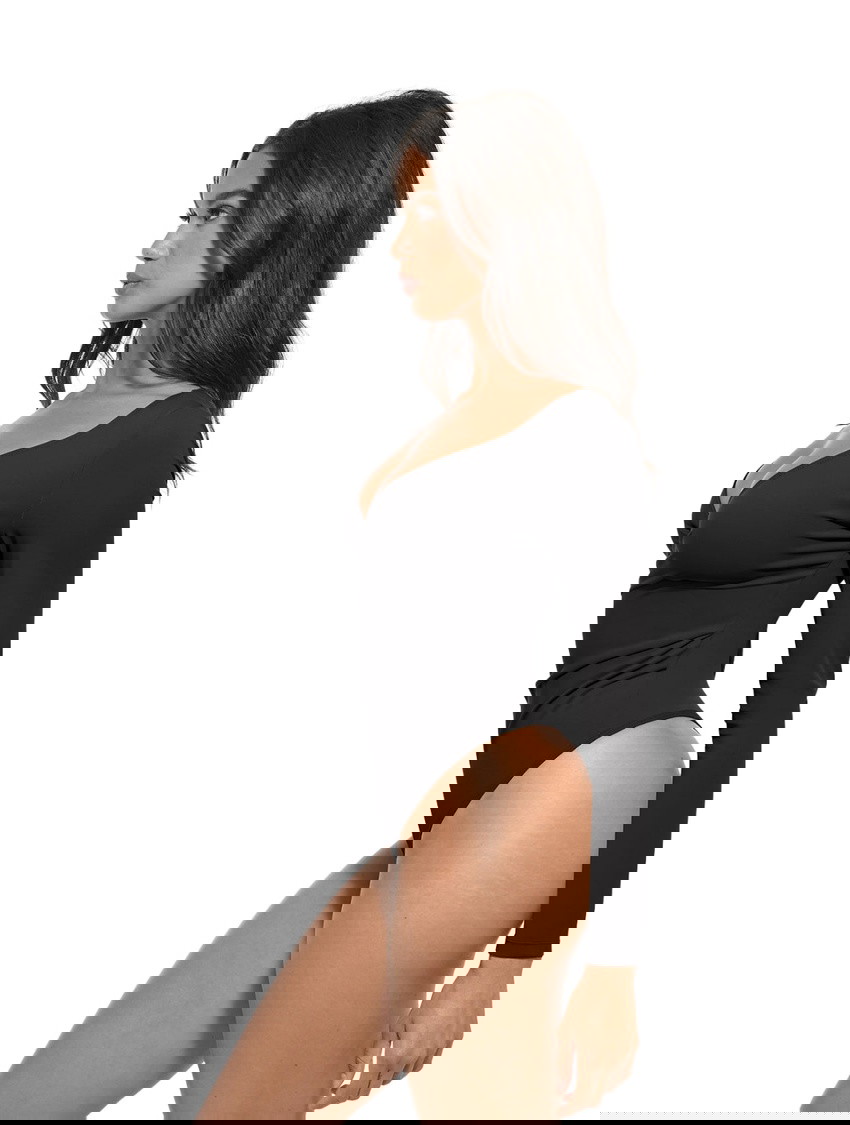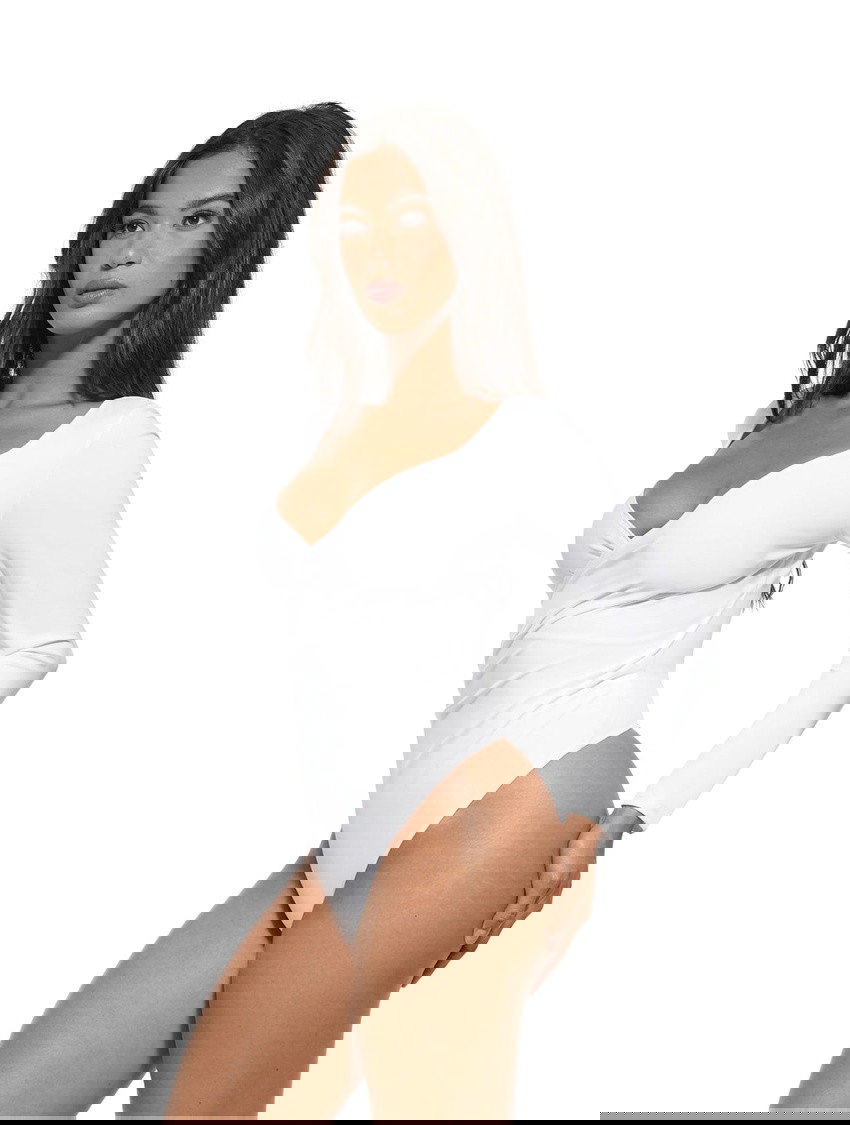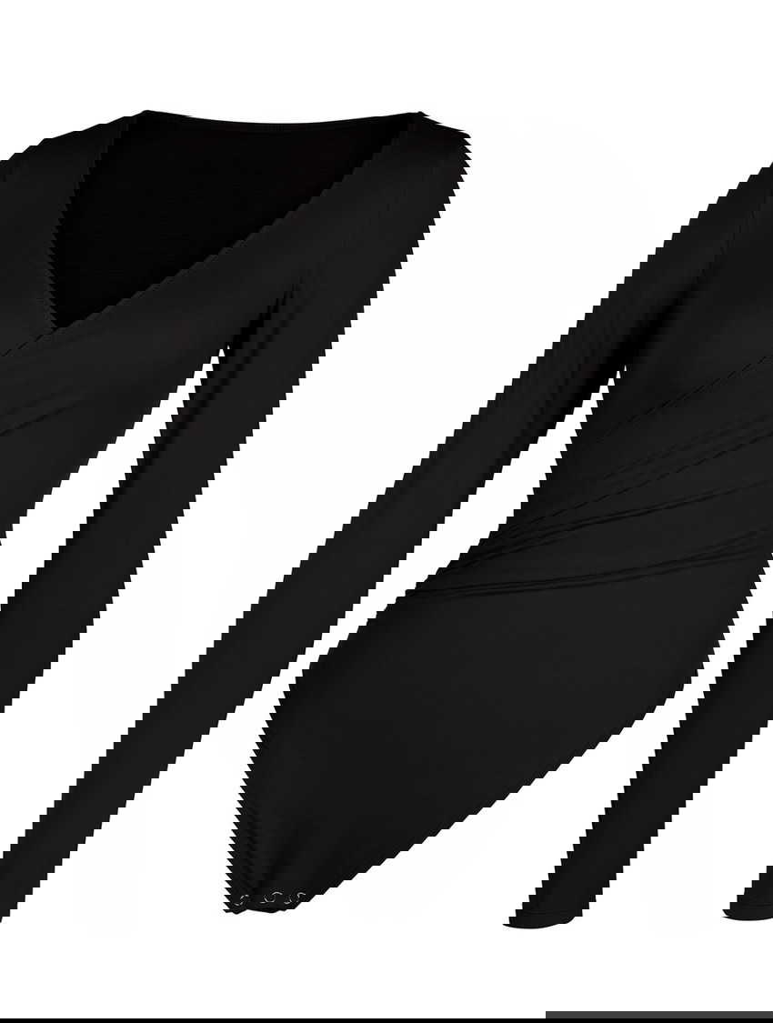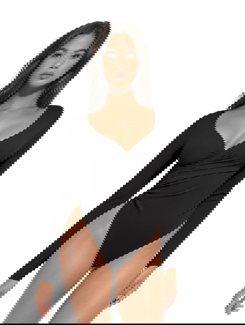 With a deep V neckline and long sleeves, this bodysuit transitions perfectly from day to night — pair it with jeans, trousers, or a chic skirt for a look that’s timeless and versatile. Finished with a convenient snap closure for easy wear, it’s the piece you’ll keep reaching for again and again.