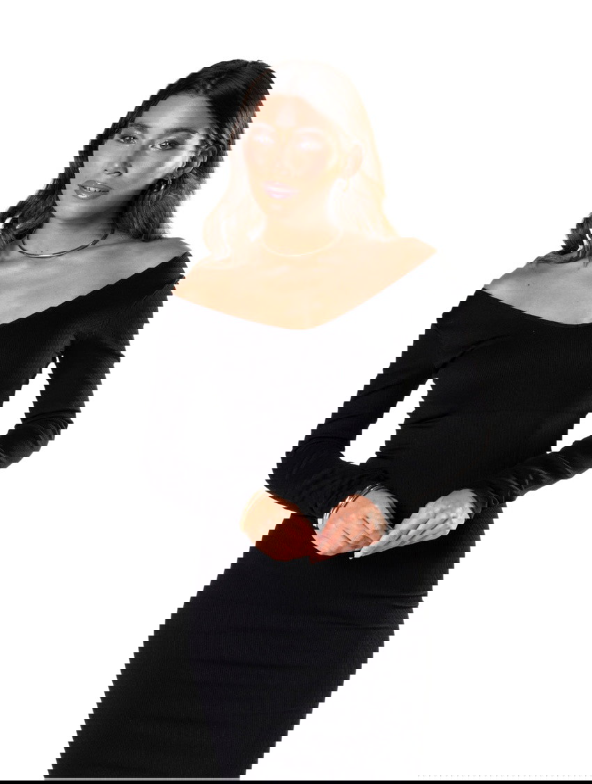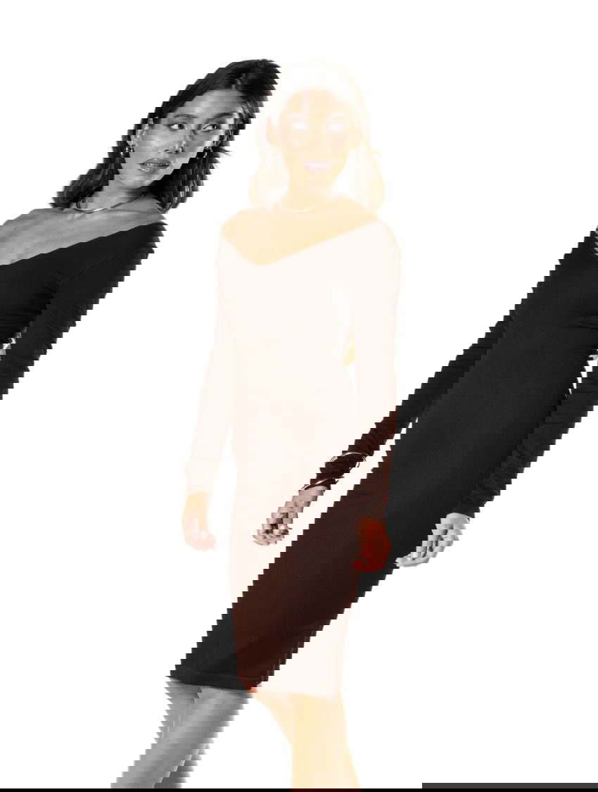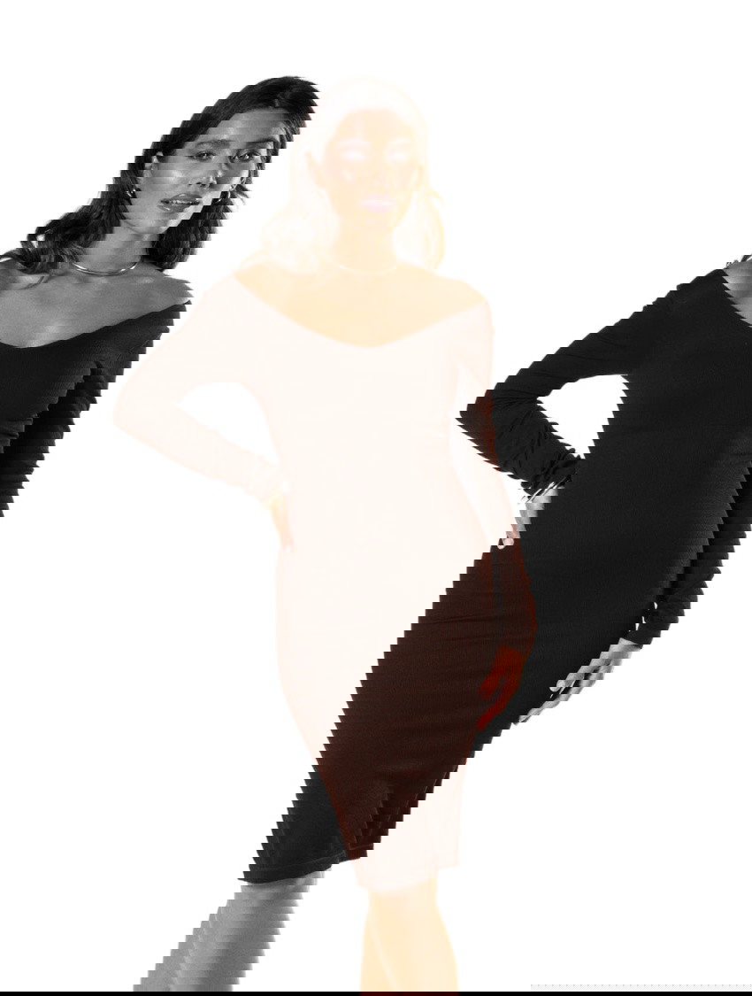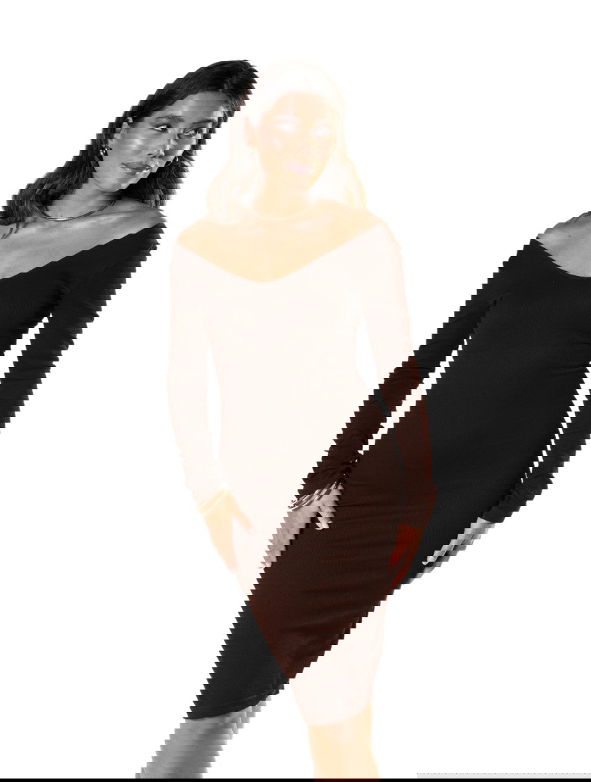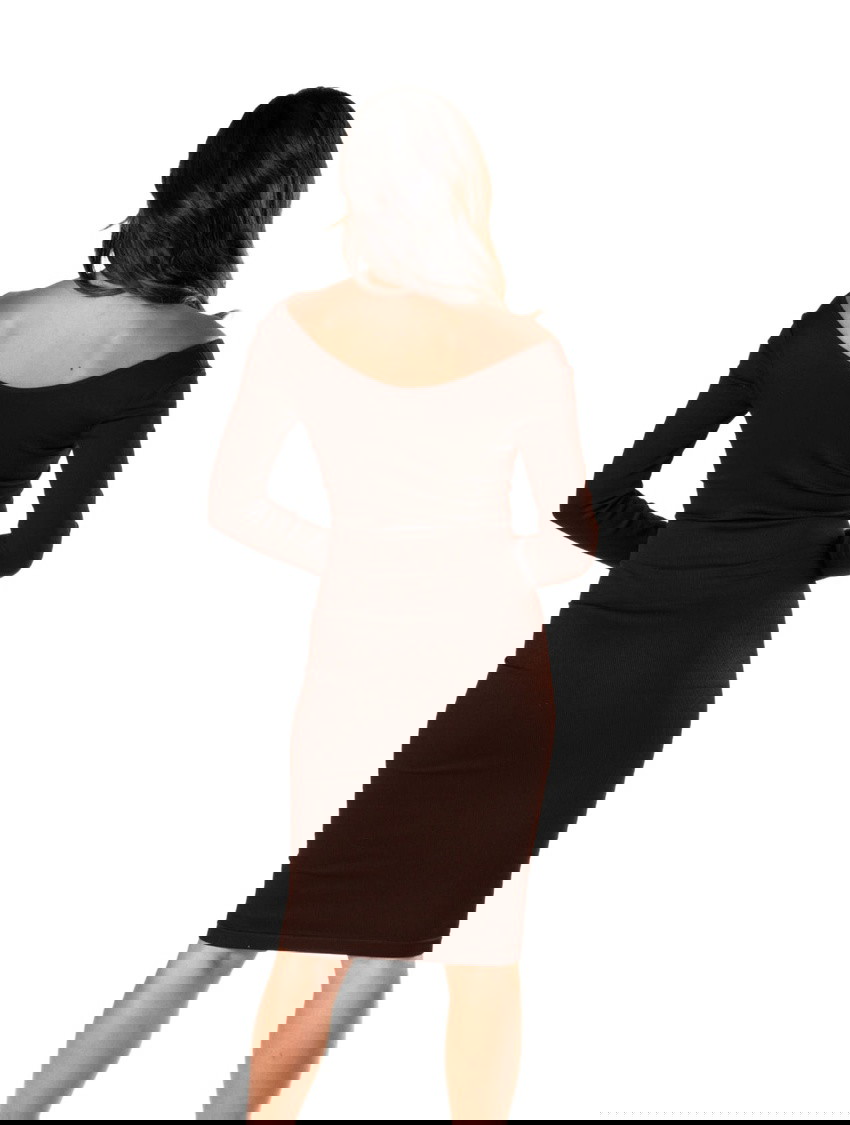Introducing our V-Neck Long Sleeve Off-Shoulder Dress—the ultimate combination of comfort, support, and timeless style. Designed with long sleeves and a flattering off-the-shoulder cut, this knee-length dress effortlessly transitions from party nights to formal occasions.
