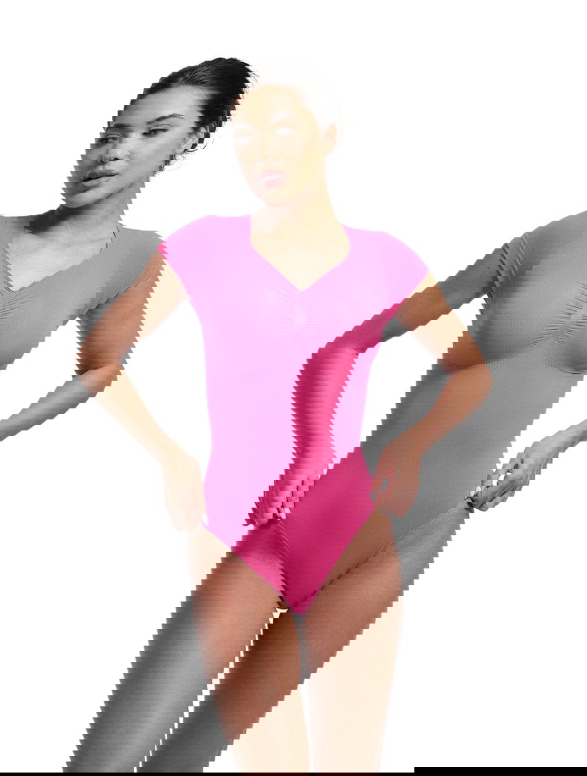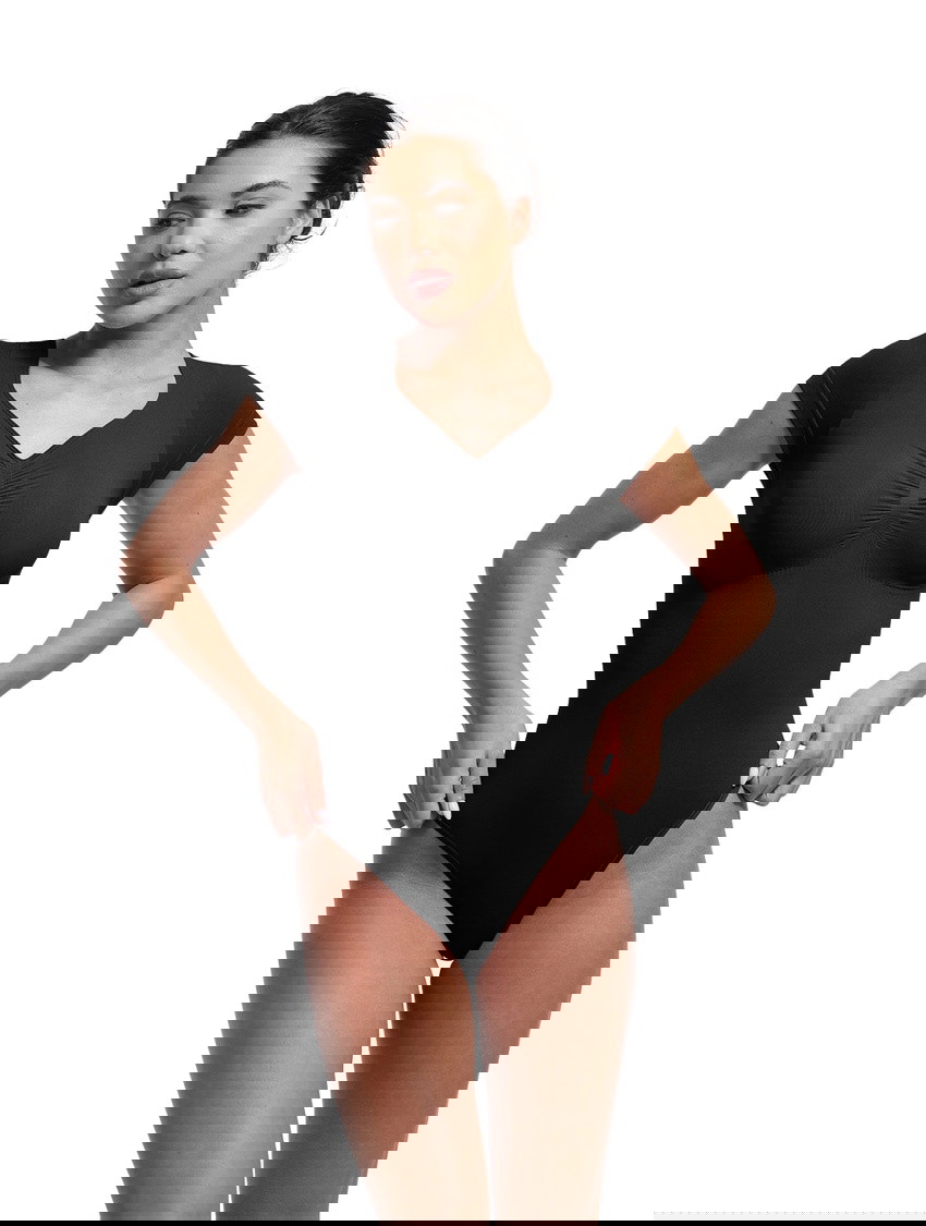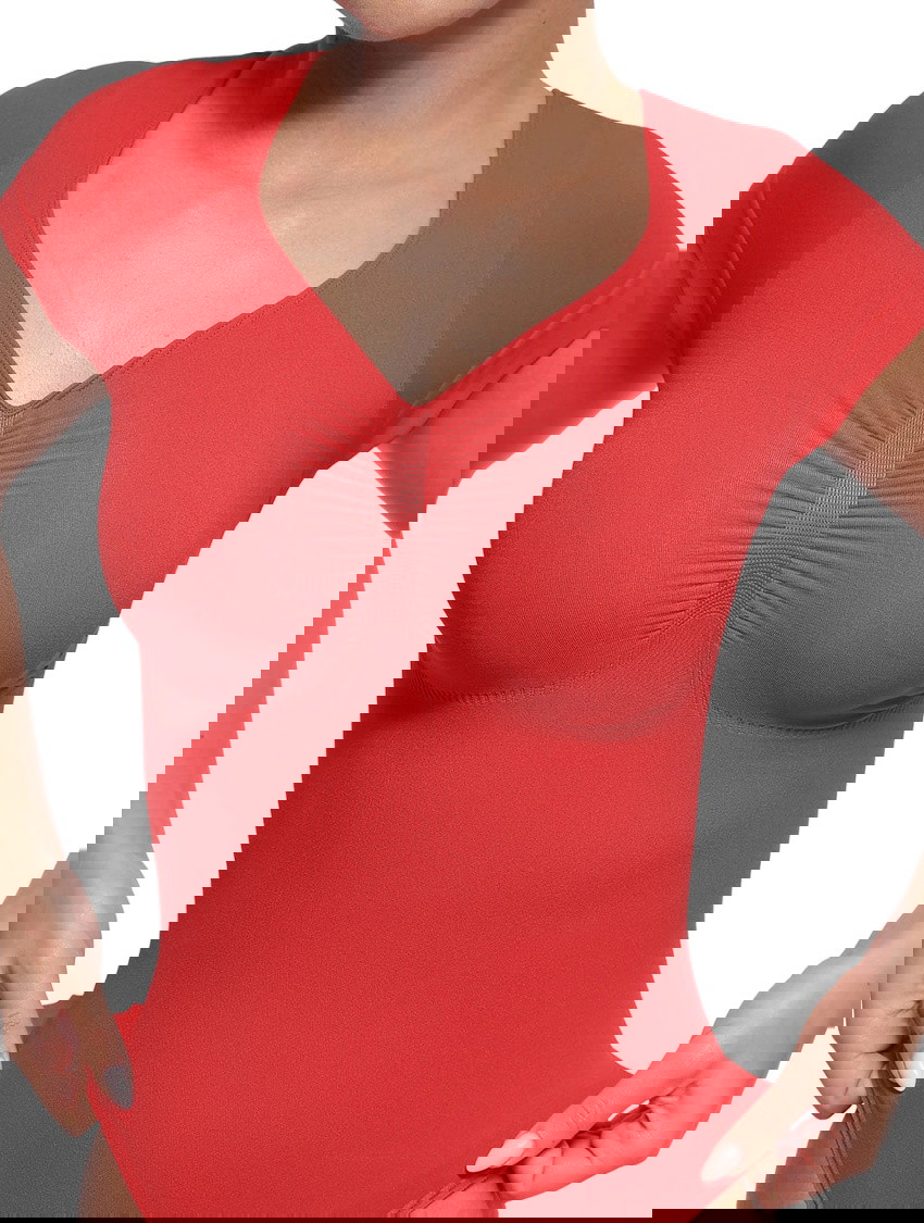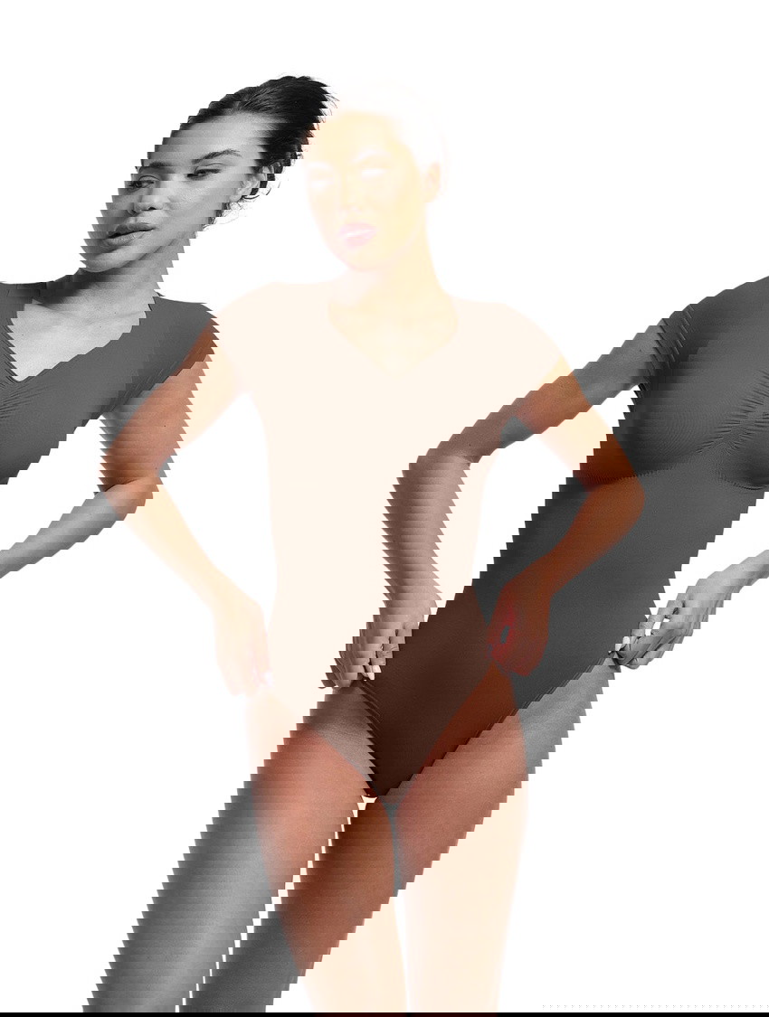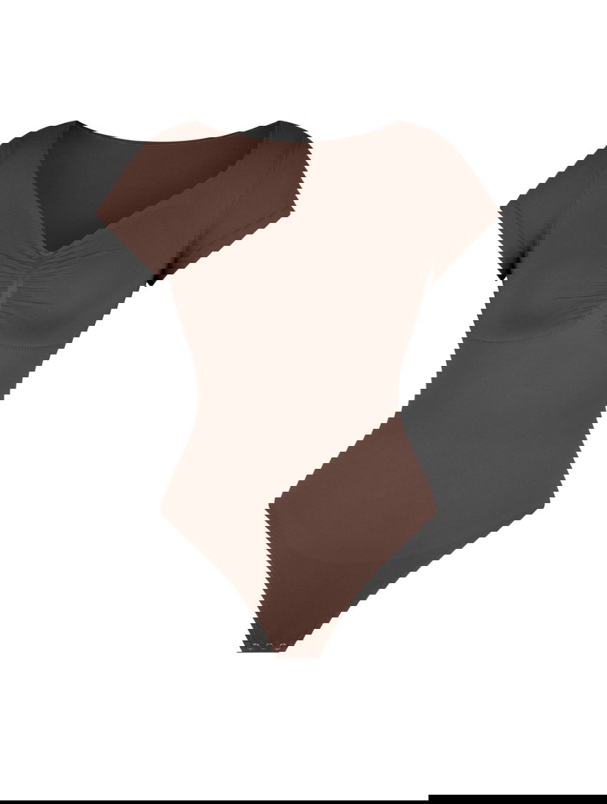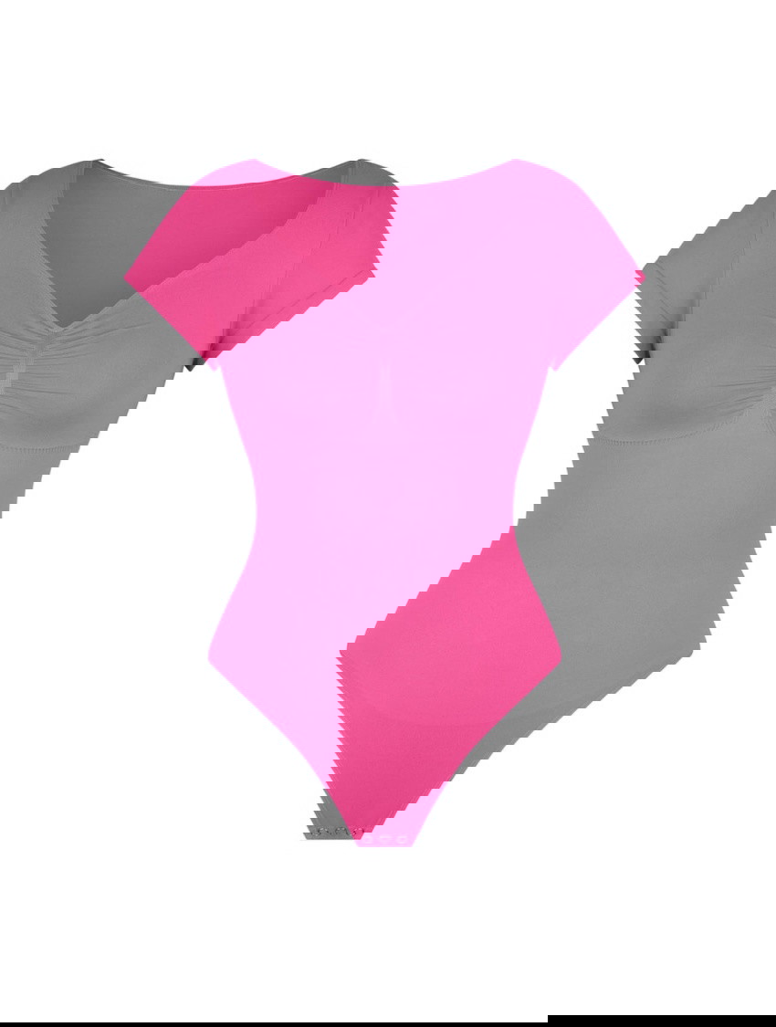 The V-Neck Sculpting Tee Bodysuit is where shaping meets style. This seamless one-piece shapewear top features short sleeves and a thong bodysuit design to smooth, lift, and enhance—while looking effortlessly polished. With medium compression that targets your bust, tummy, back, and waist, this versatile bodysuit combines a flattering V-neckline with sweetheart-inspired curves for the ultimate layering essential that works hard behind the scenes.